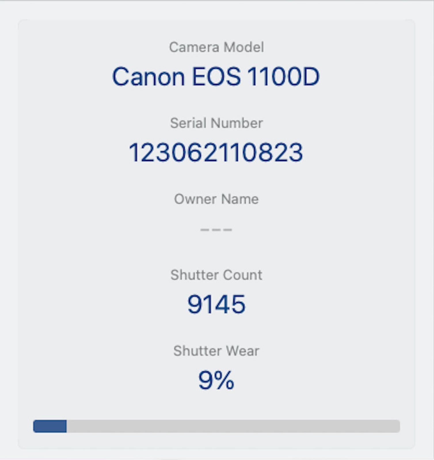 The shutter count is 9145, only under 10% of the estimated shutter life, so there is plenty of life remaining from this great camera.