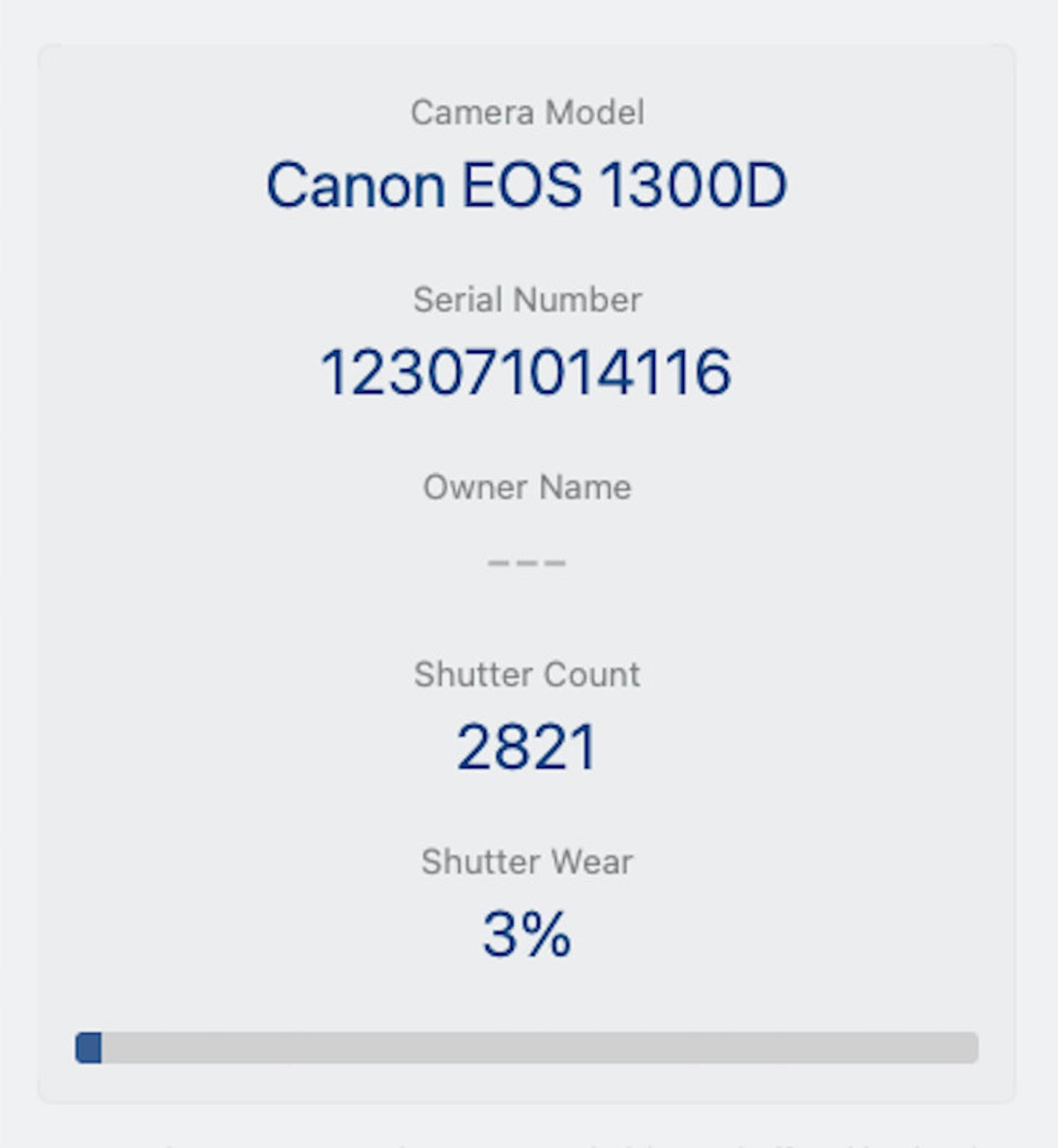 Shutter Count: This shutter count is just 2821, only under 3% from the estimated shutter life, so it still works like new.