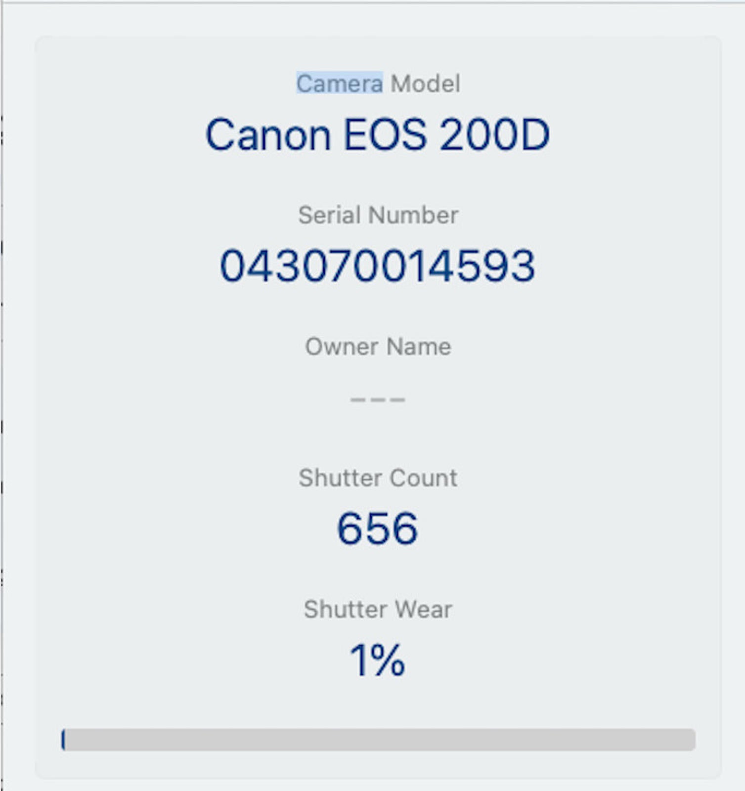 The shutter count is just 656, only under 1% of the estimate shutter life, so it still works like new.