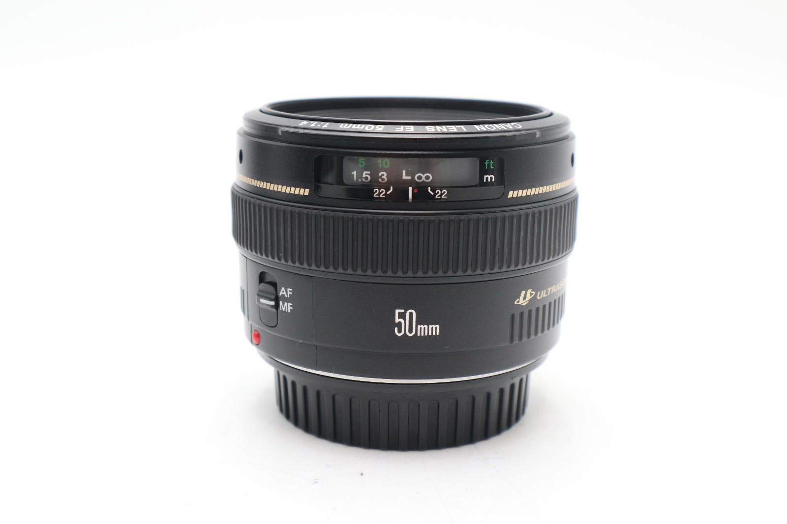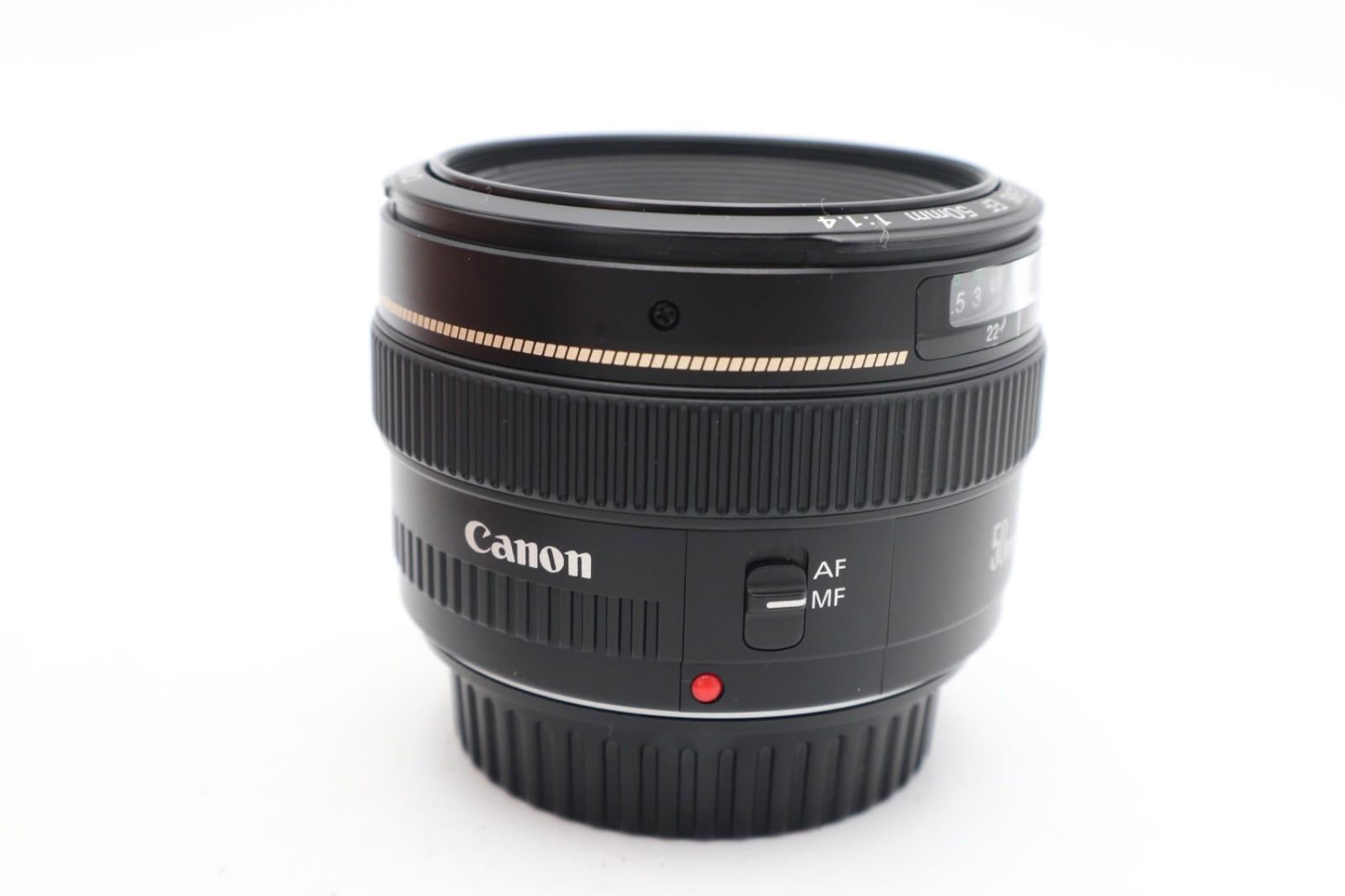 For sale a Canon 50mm Prime Lens f/1.4 USM Sharp Lens in excellent working condition. Ask a bunch of photographers what their favorite lens is - and you will likely hear the Canon EF 50mm f/1.4 USM Lens mentioned. It is sharp, small, light, inexpensive and with an f1.4 aperture, fast.The 50 f/1.4 finds a home with many photographers - from pro to casual - for several reasons.The first reason for the popularity of this Canon lens is image quality.Although it is soft wide open, the Canon EF 50mm f/1.4 USM Lens is sharp at f/2 and very sharp when stopped down to f/2.8 or narrower.