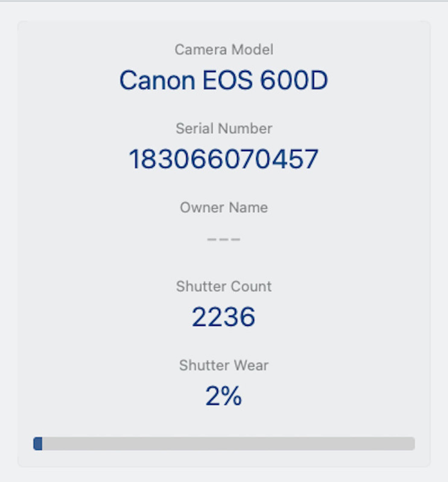 Shutter Count: The shutter count is just 2236, only over 2% of the estimated shutter life, so it still works like new.