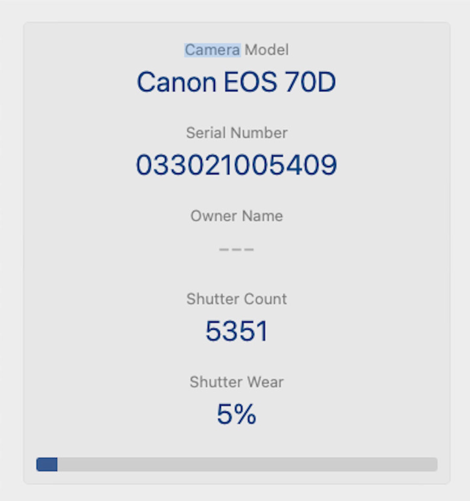 Shutter Count: The shutter count is just 5351, only over 5% of the estimated shutter life, so it still works like new.