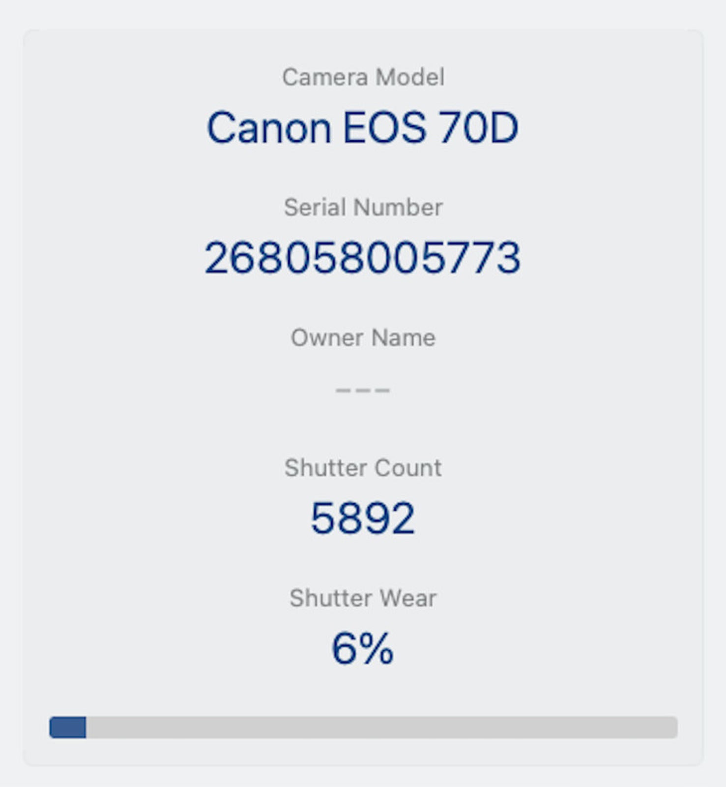 Shutter Count: The shutter count is just 5892, only under 6% of the estimated shutter life, so it still works like new.