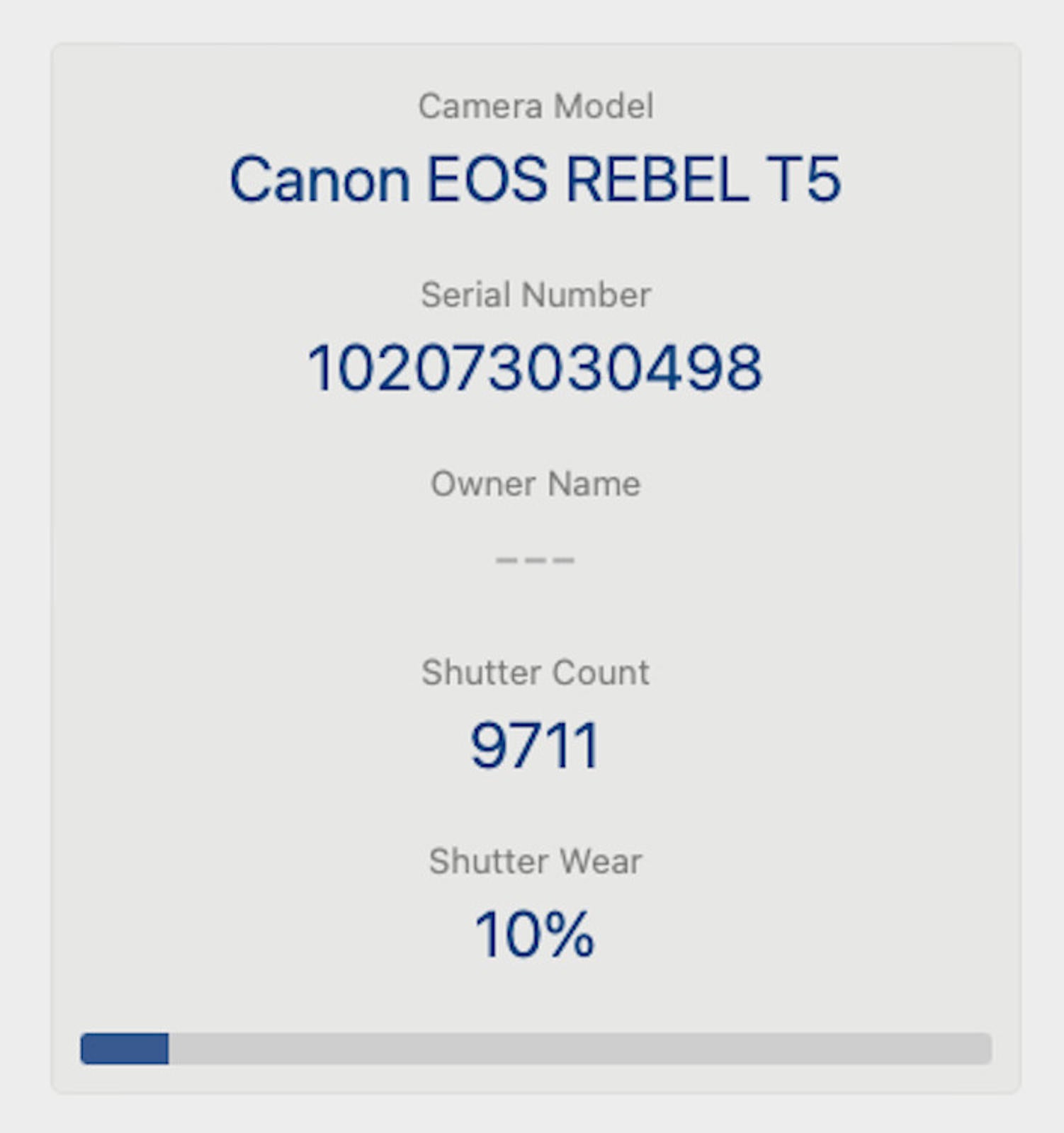 Shutter Count: This shutter count is 9711, only under 10% of the estimates shutter count, so there is plenty of life remaining from this great camera.