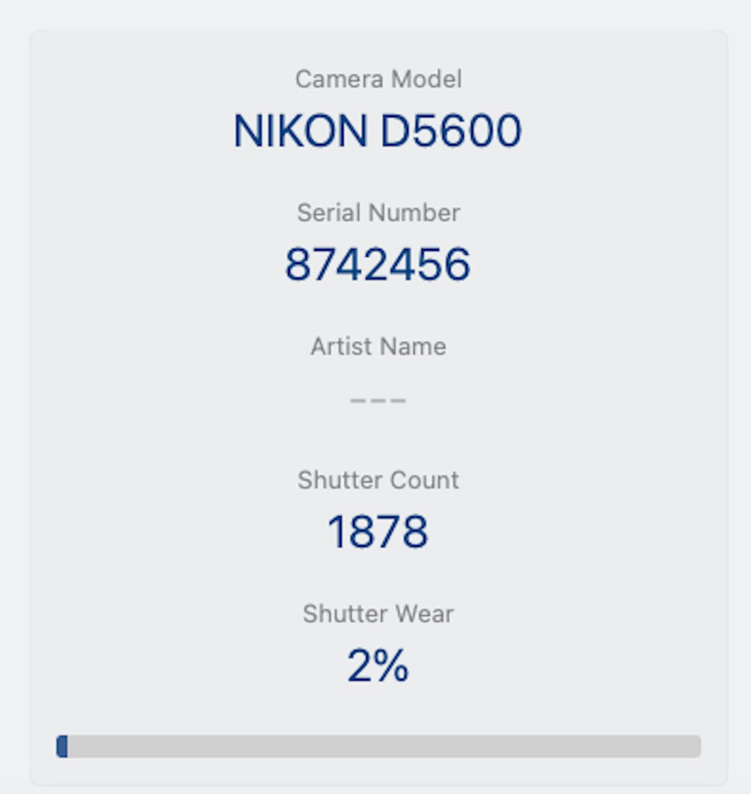 Shutter Count: The shutter count is just 1878, only under 2% of the estimated shutter life, so it still works like new.