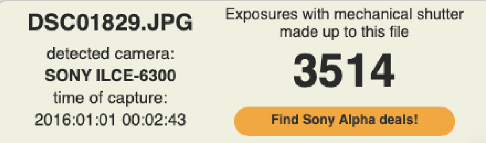 Shutter Count: The shutter count is 3514, only over 3% of the estimated shutter life, so it still works like new.