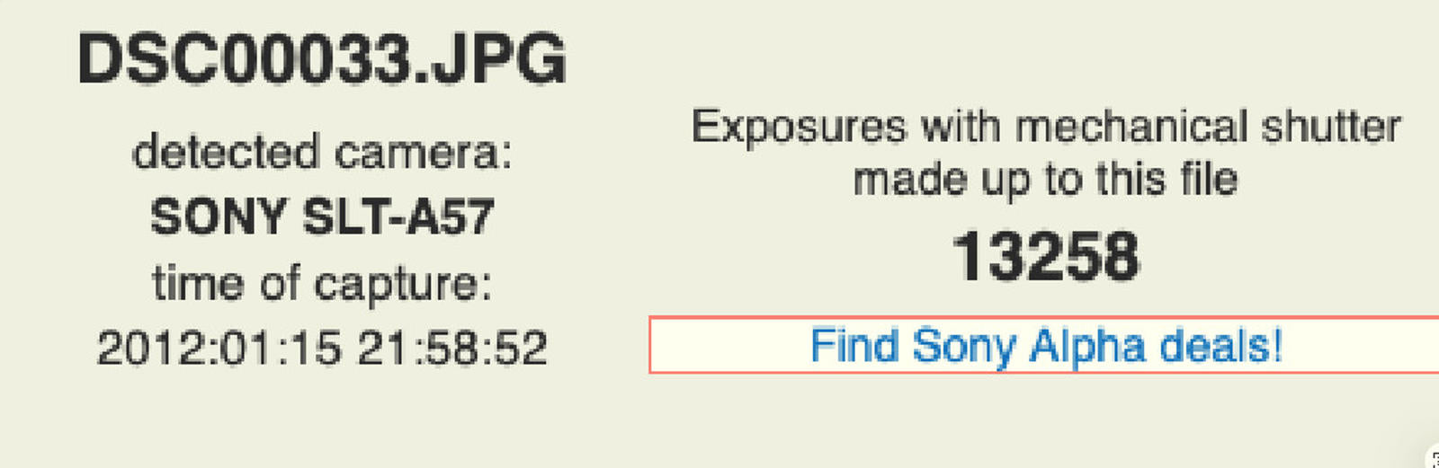 Shutter Count: The shutter count is 13258, just over 13% of the estimated shutter life, so there is plenty of life remaining from this great camera.